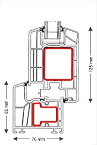 | Flügel innen öffnend | H 476 - 125 mm - 2,5 mm Stahlarmierung | ||||